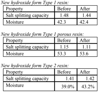Anion Resin Exposure to Bleach (0.5% NaOcl for 1½ hour)